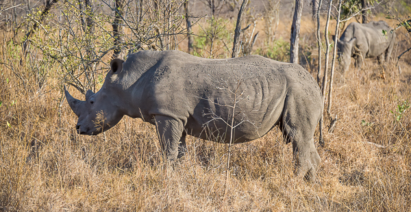 | ein riesiges Nashorn hält sich fast 100 Meter vor unserem Hotel auf und wartet darauf, von uns auf den Chip gebannt zu werden. Ein Glück - denn bei zwei anderen Safaris habe ich nicht ein Nashorn gesehen. |
