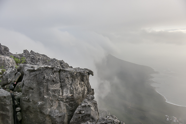 Nachdem es am Cap der Guten Hoffnung doch noch super Wetter gab, ist hier das Tischtuch des Tafel-berges sehr gut zu sehen. Sicherlich ein wenig zuviel. Wir wagen es aber dennoch, denn oben müssen