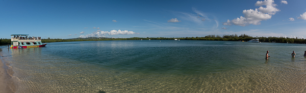 | Das Party - Boot dreht ab - es geht zum Nylon Pool, eine Sandbank, die sich durch den Zerfall von Korallen gebildet hat und einen tollen Pool gebildet hat - Hüfthohes Wasser erwartet uns, wiegende |