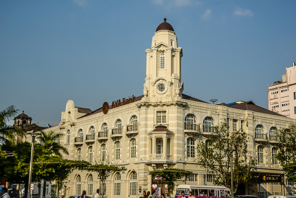 | reparaturbedürftig und nach Renovierung schreiend. Schade, diese tollen Häuser verfallen weil kein Geld zur Verfügung steht. Wir gelangen an den Eingang des Maha Bandoola Gardens. Hier sind die einheimischen Männer und Frauen unterwegs und genießen den Abend. Sitzen auf dem Rasen, machen |